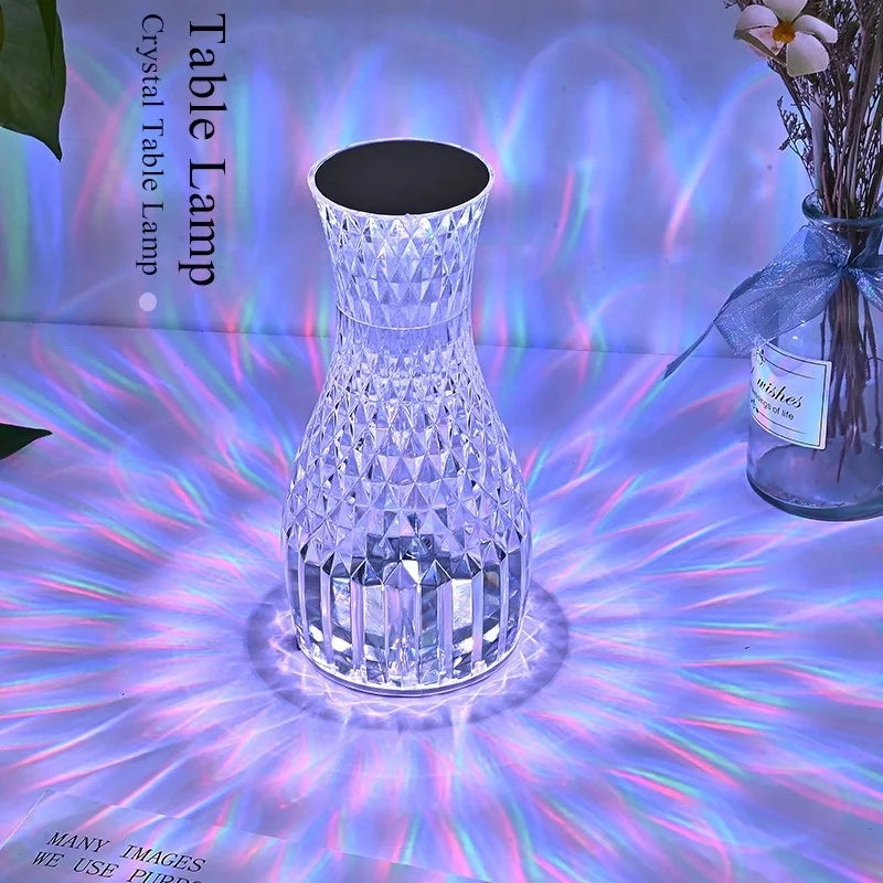 Crystal rechargeable vase table lamp, bedroom bedside lamp, creative diamond night light, dimmable bedside table ambient light