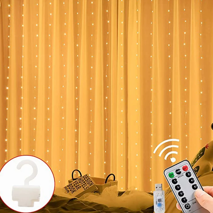 165 LED copper wire light 3 * 3 curtain light USB remote control eight function color light Christmas curtain decoration light