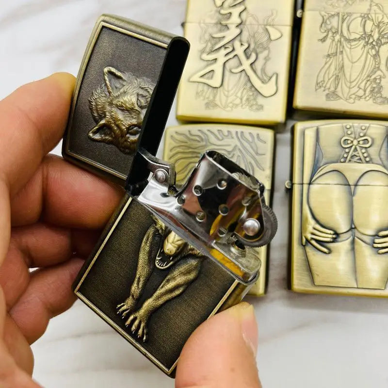 New Creative Embossed Grinding Wheel Fuel Lighter, Classic Windproof Lighter, Cigarette Accessories, Men's Gift