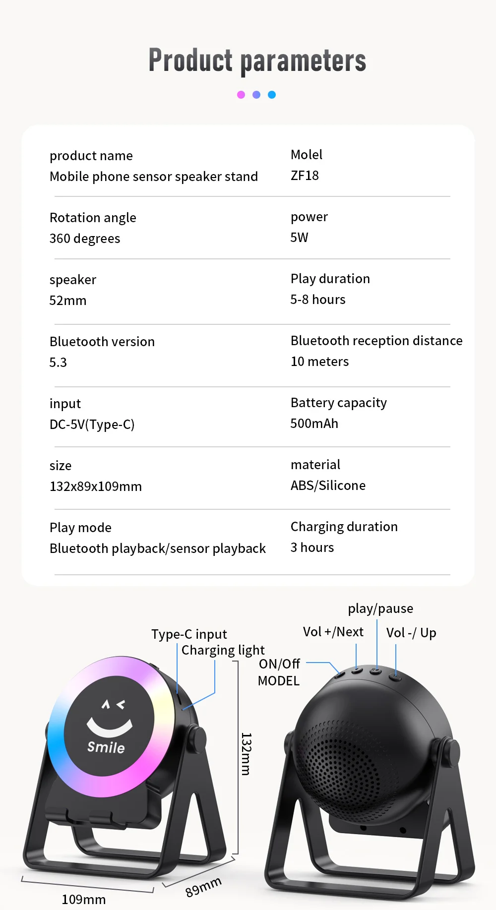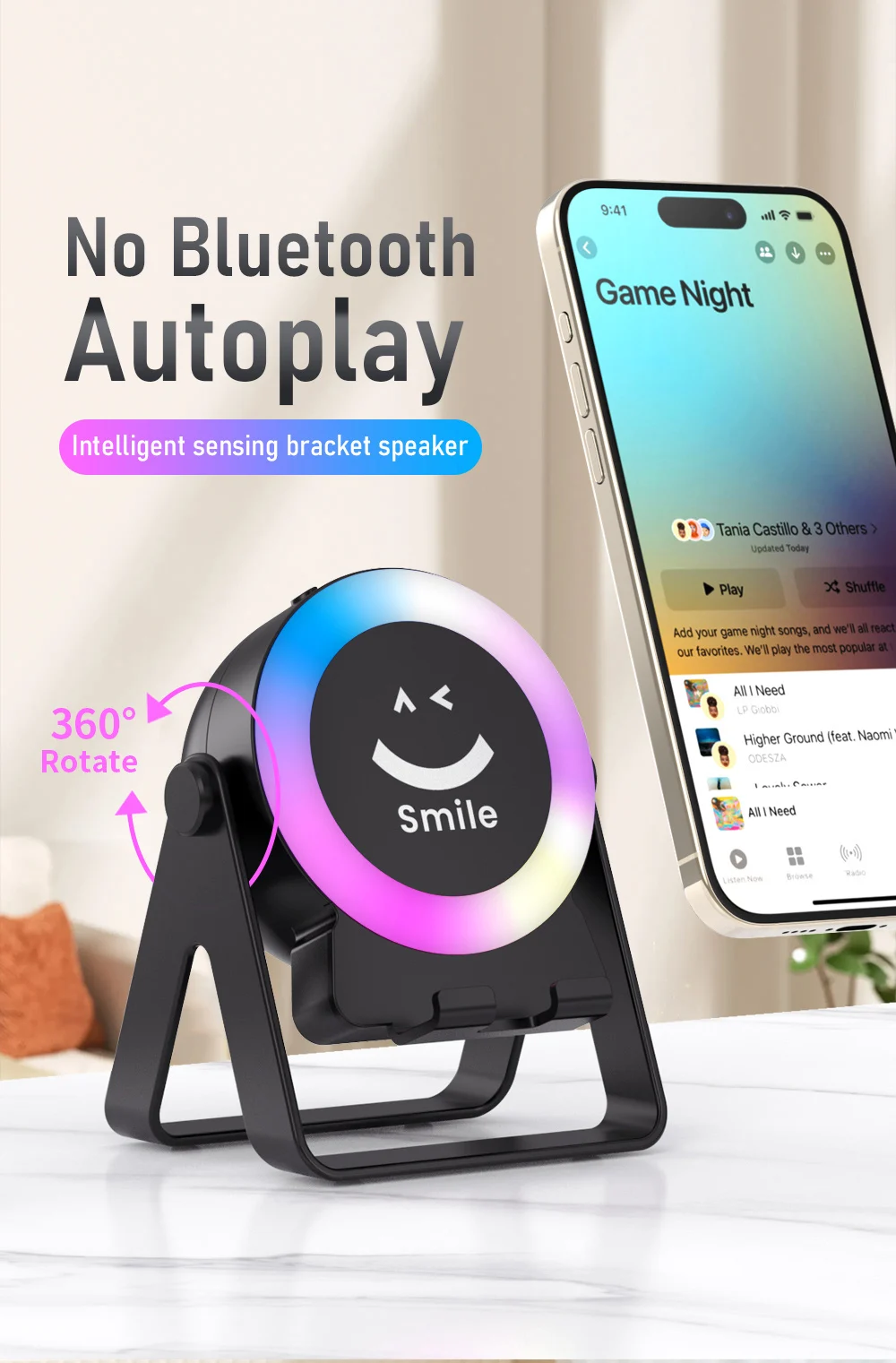 1.No Bluetooth needed, one put and sound: intelligent sensor bracket speaker