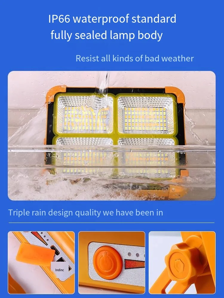 Superbright 1000watt Portable Camping Tent Lamp USB Rechargeable LED Solar Flood Light Outdoor waterproof Work Repair Lighting